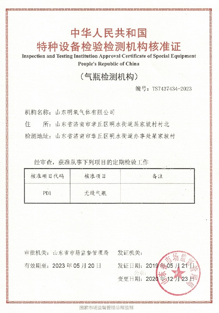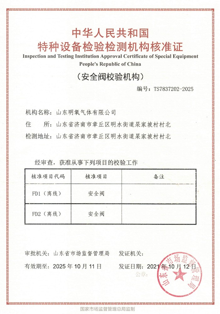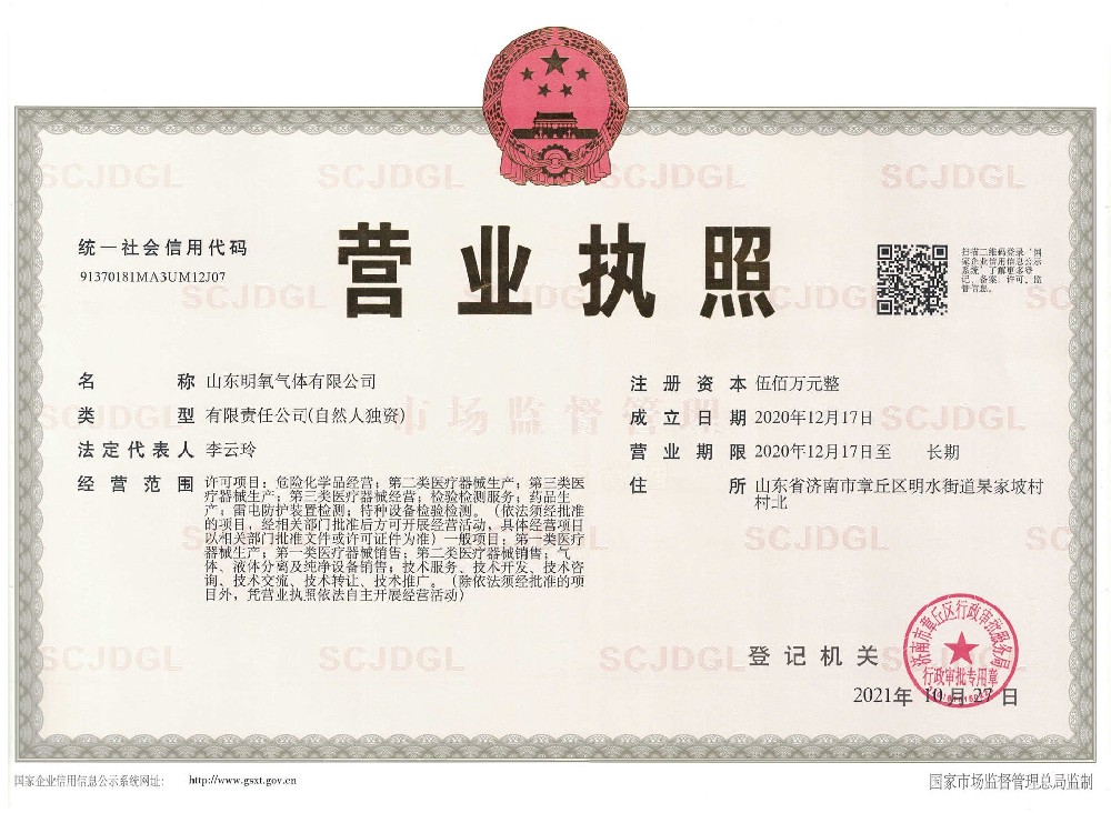 ??? 山東明氧氣體有限公司的前身為始建于1993年的章丘市明水氧氣廠,2020年12月企業(yè)由民營(yíng)獨(dú)資轉(zhuǎn)型升級(jí)為山東明氧氣體有限公司,企業(yè)進(jìn)入新的發(fā)展階段。公司位于山東省濟(jì)南市章丘區(qū)明水街道杲家坡村村北,占地面積4000平方米,注冊(cè)資金500萬(wàn)元,固定資產(chǎn)投資3000萬(wàn)元,主要經(jīng)營(yíng)項(xiàng)目為醫(yī)用氧氣、工業(yè)氧氣、氮?dú)狻⒏呒兊獨(dú)狻鍤狻⒏呒儦鍤?、高純氦氣、二氧化碳、混合氣體等各種工業(yè)氣體、高純氣體、混合氣體的充裝銷售、各類氣瓶的銷售、安全閥校驗(yàn)、鋼質(zhì)無(wú)縫氣瓶的檢驗(yàn)等。