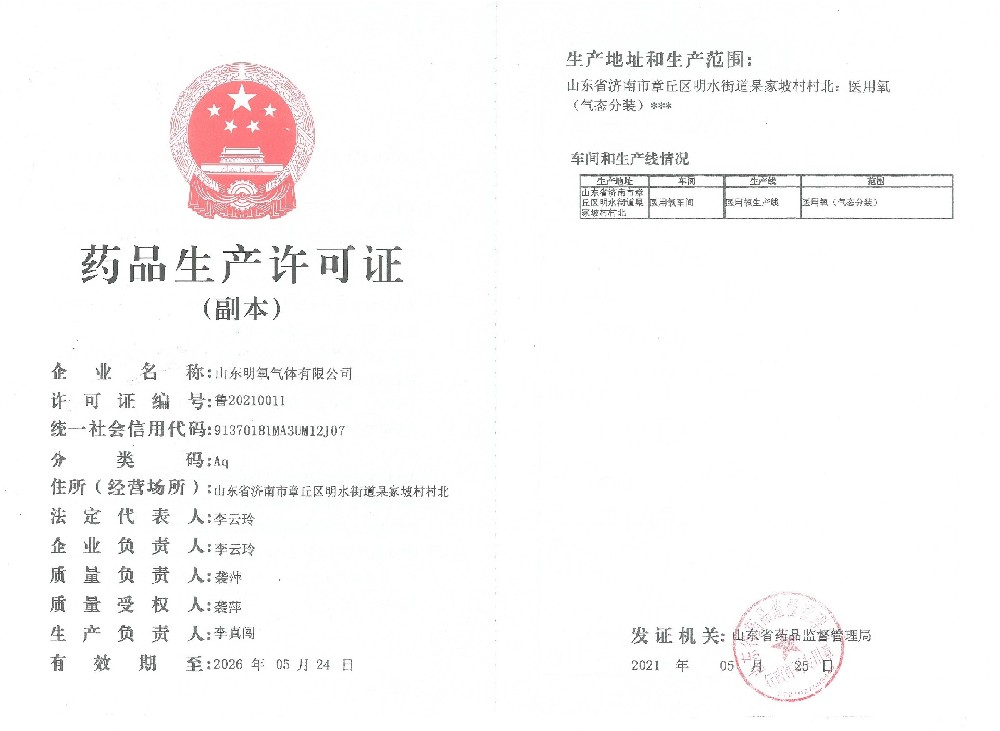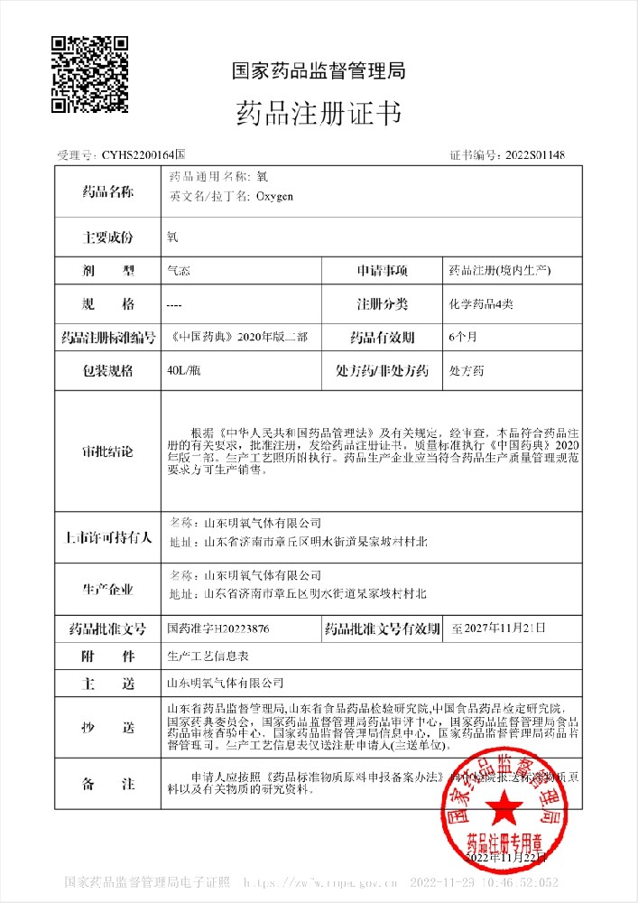2022年12月取得國(guó)家藥品監(jiān)督管理局頒的藥品注冊(cè)證書,醫(yī)用氧項(xiàng)目正式投入生產(chǎn)